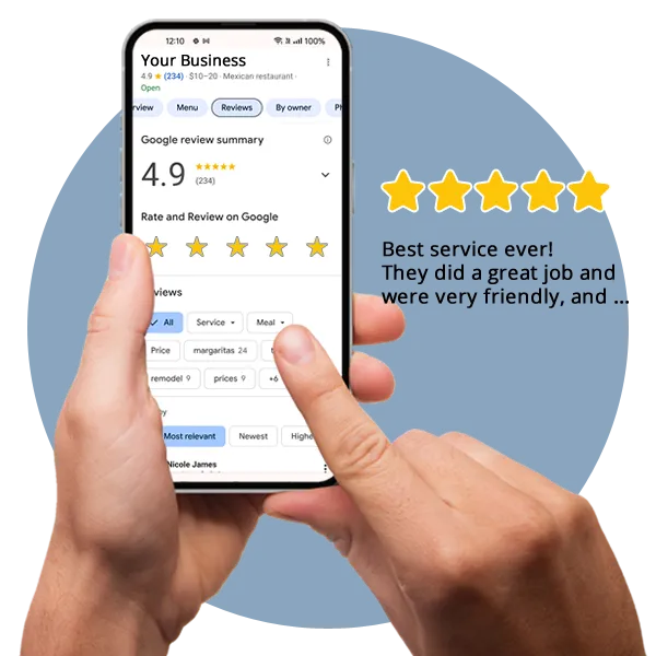 As you collect more reviews, your rating will increase and Google will start to rank you higher. As this happens, most of our clients see an increase in ranking, traffic and sales.