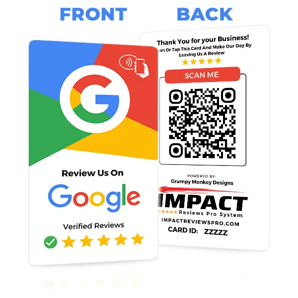 The IMPACT Reviews Card makes it easy to collect reviews on the spot, right when your customer is happiest and most likely to share their experience. A quick tap or scan, and they’re guided to leave the perfect review — no tech skills or awkward conversations required.